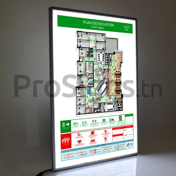La signalisation de sécurité et de santé conforme à la normalisation ISO 7010 permet d’informer les utilisateurs et le public des règles en vigueur et de l’orienter dans ses déplacements, sur les dispositions existantes en matière de prévention des risques mais également par exemple de la présence de produits dangereux éventuellement stockés, des moyens de lutte contre l’incendie, des chemins à suivre pour une évacuation efficace en cas de sinistre. ProSigns.tn assure toute la chaîne de fabrication.
