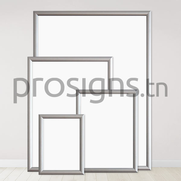 Cadre clic-clac pour Plan d’évacuation. Profilé 25 mm en aluminium anodisé, formats A4, A3, A2, A1
