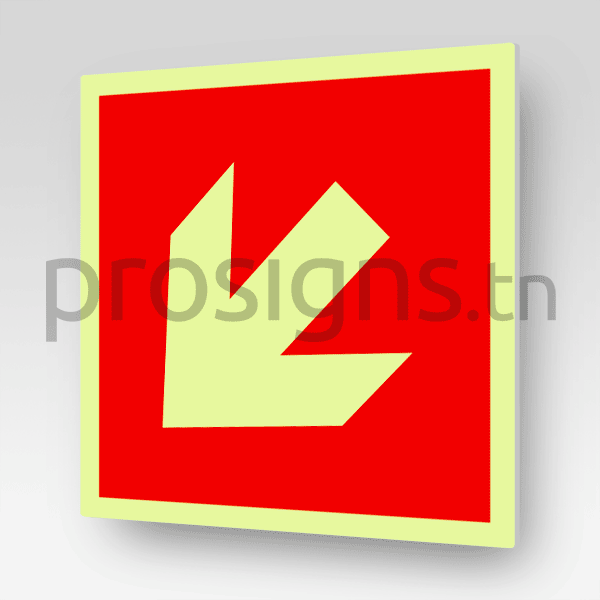Plaque / Panneau suspendu Photoluminescent / Phosphorescent. PS-PL-A135D - Flèche directionnelle 135° vers la droite