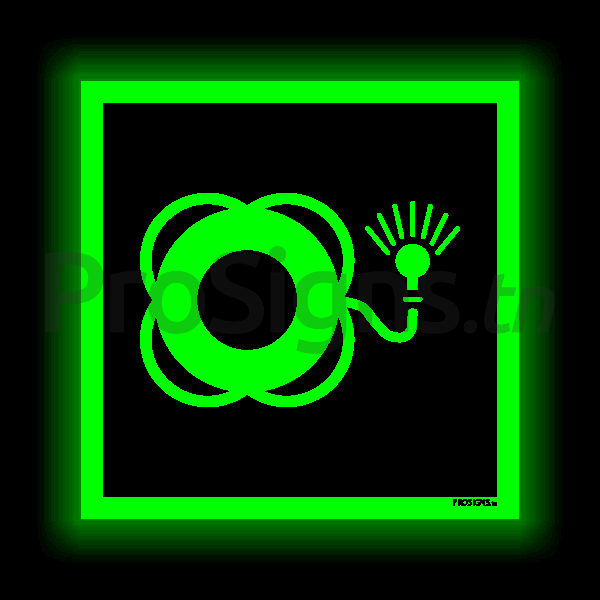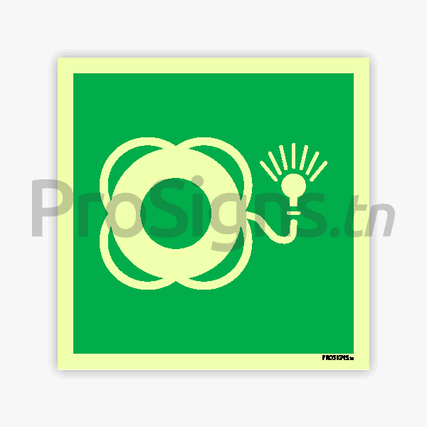 Panneau Photoluminescent / Phosphorescent / ‘Glow-in-the-dark’. PLE043 – Bouée de sauvetage avec ligne flottante et appareil lumineux