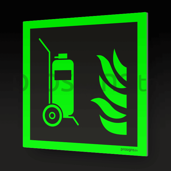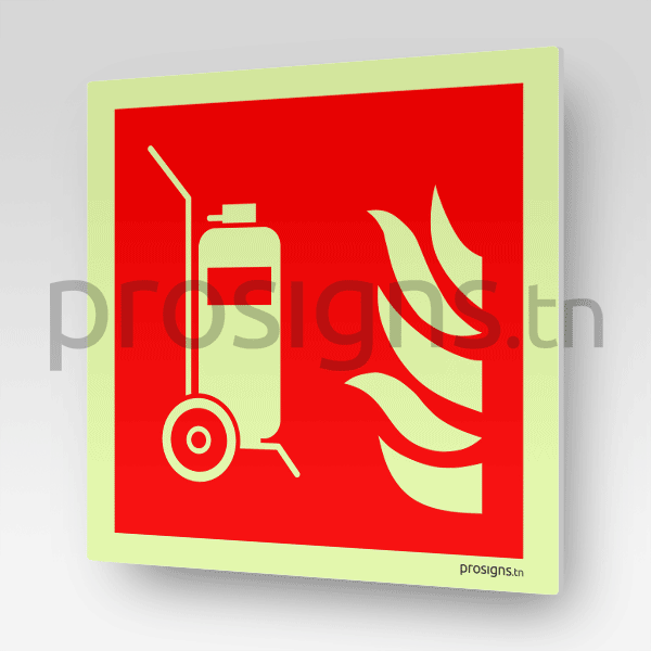 Plaque / Panneau drapeau. Photoluminescent / Phosphorescent. PD-PL-F009 - Extincteur d’incendie sur roues