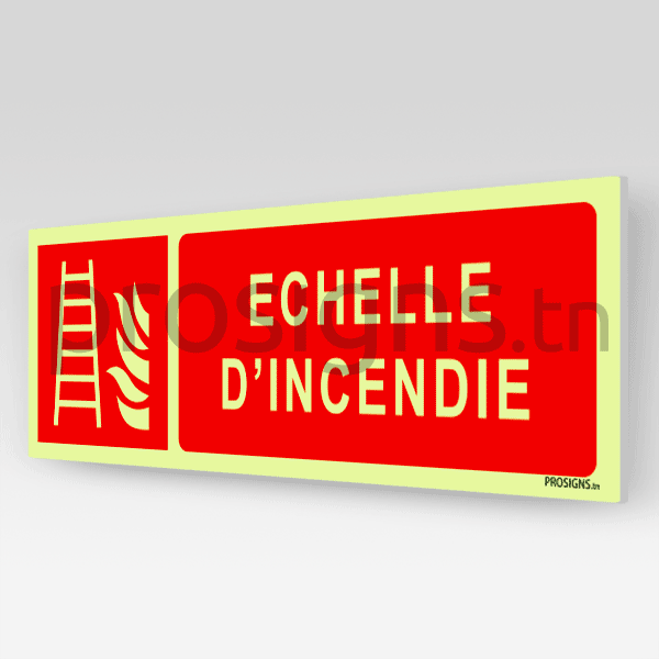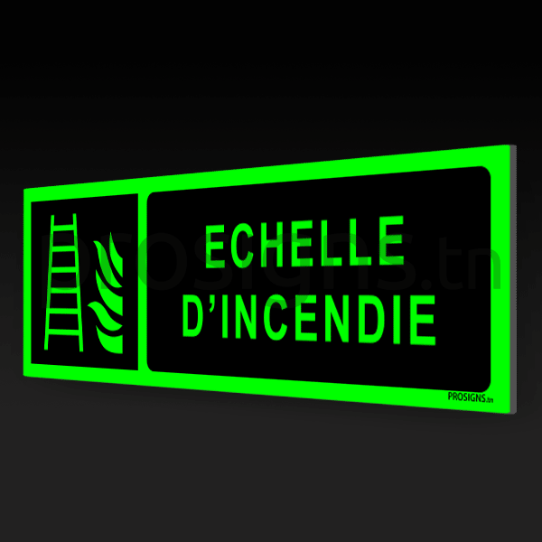 Plaque / Panneau angulaire 3D Photoluminescent / Phosphorescent (En Arabe et Français). PA-PL-F002mar - Echelle d’incendie سلم حريق