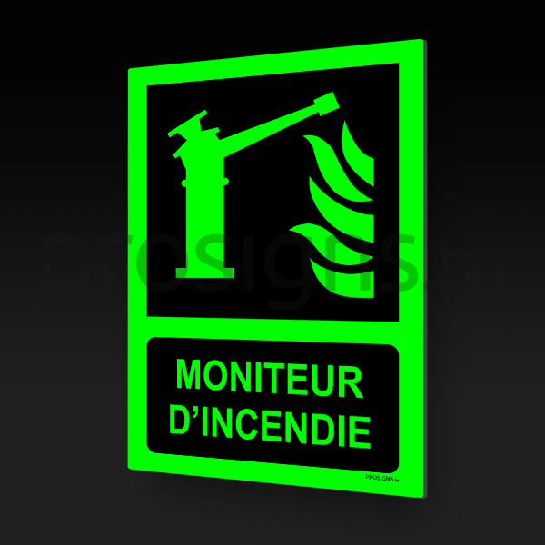 Plaque / Panneau drapeau Photoluminescent / Phosphorescent. PD-PL-F015m - Moniteur d’incendie