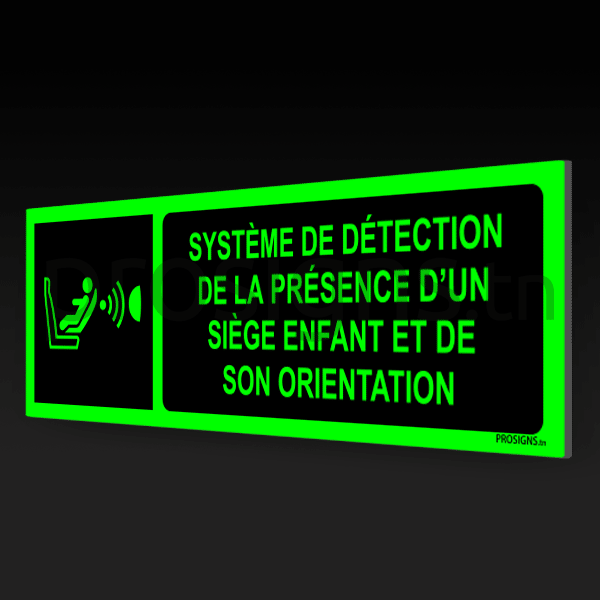 Panneau Photoluminescent / Phosphorescent. PLE014hm – Système de détection de la présence d’un siège enfant et de son orientation