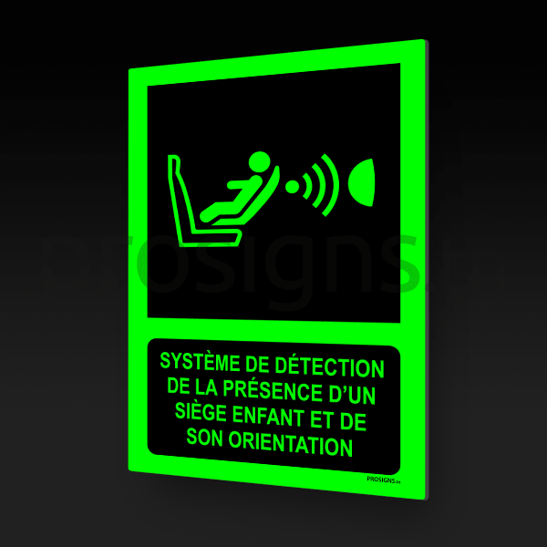 Panneau Photoluminescent / Phosphorescent / ‘Glow-in-the-dark’. PLE014 – Système de détection de la présence d’un siège enfant et de son orientation