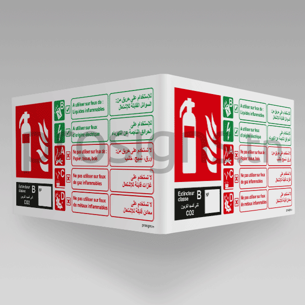 Plaque / Panneau angulaire 3D HN.F.EX053 – Extincteur classe B مطفأة حريق بثاني أكسيد الكربون