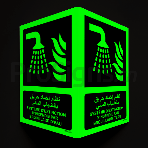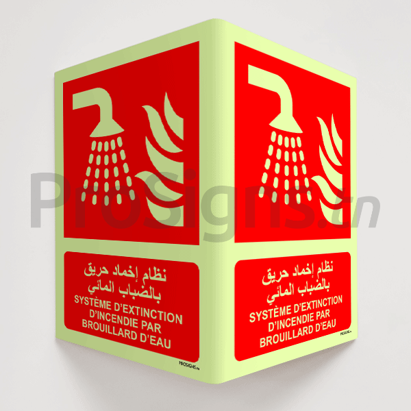 Plaque / Panneau drapeau Photoluminescent / Phosphorescent (En Arabe et Français). PD-PL-F011mar - Système d’extinction d’incendie par brouillard d’eau نظام إخماد حريق بالضباب المائي
