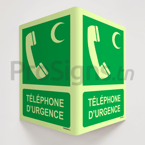 Panneau Photoluminescent / Phosphorescent / ‘Glow-in-the-dark’. PLE004mar - Téléphone d’urgence هاتف الطوارئ