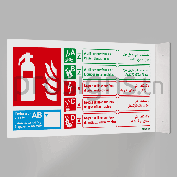 Plaque / Panneau angulaire 3D HN.F.EX050 – Extincteur classe A-B مطفأة حريق بالماء