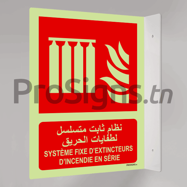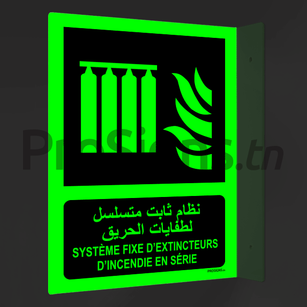 Plaque / Panneau angulaire 3D Photoluminescent / Phosphorescent (En Arabe et Français). PA-PL-F008mar - Système fixe d’extincteurs d’incendie en série نظام ثابت متسلسل لطفايات الحريق