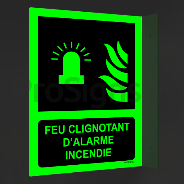 Panneau Photoluminescent / Phosphorescent / ‘Glow-in-the-dark’. PLF018m - Feu clignotant d’alarme incendie